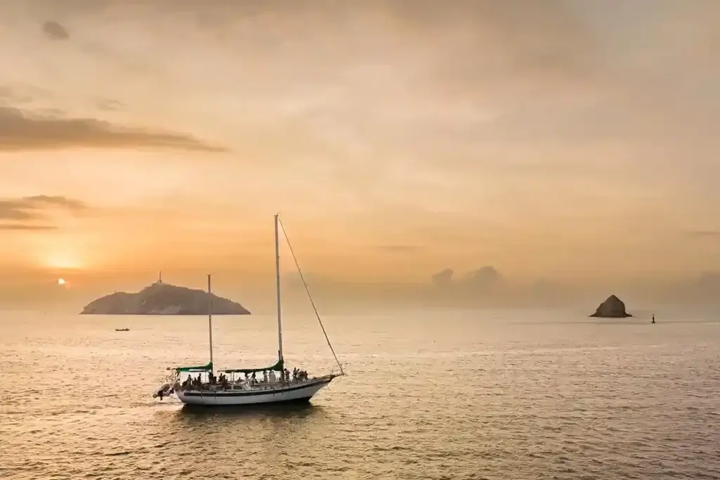 Disfruta de un espectacular paseo en lancha o yate por las bahías de Santa Marta, un destino reconocido por sus aguas cristalinas y su impresionante puesta de sol.